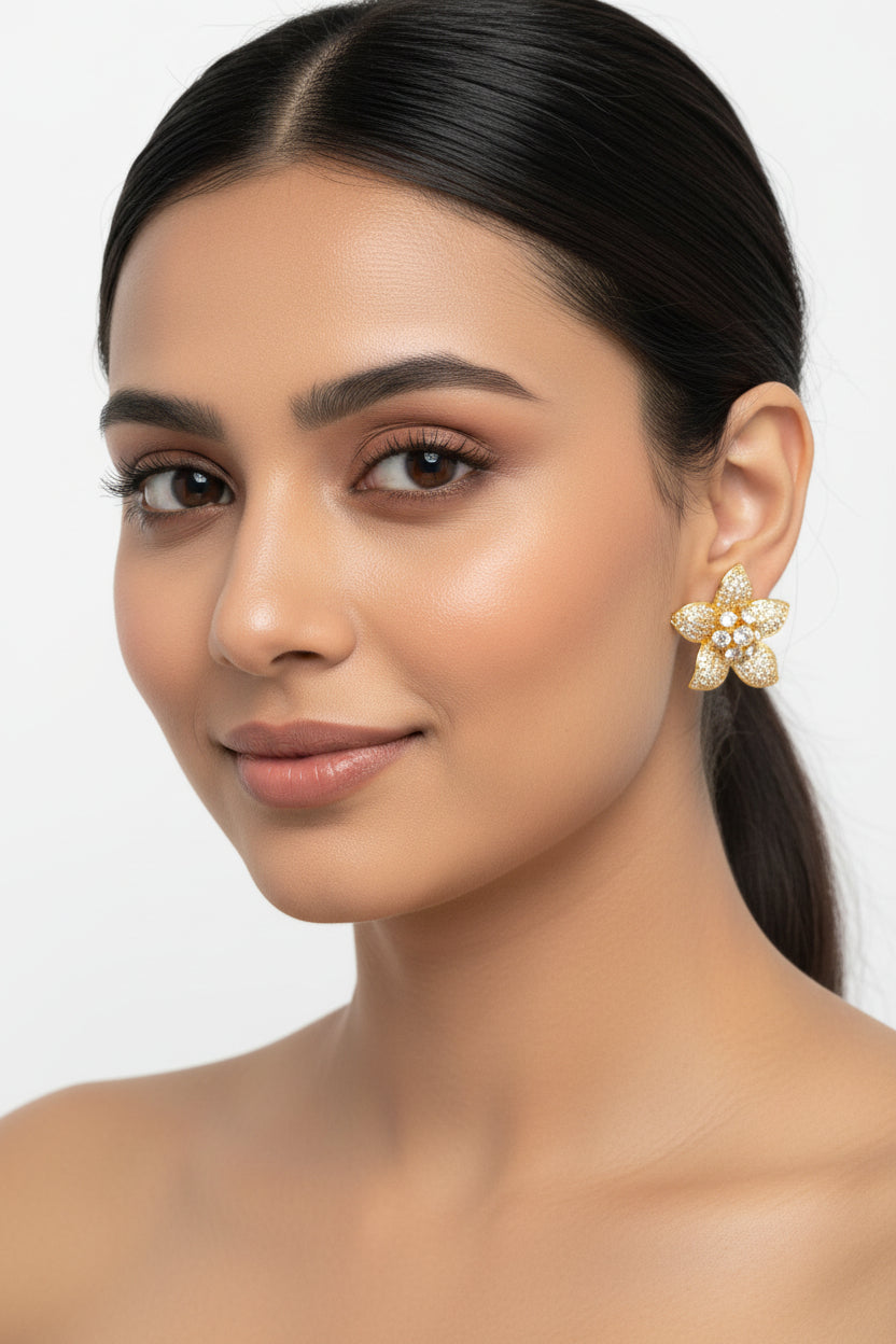 Glittering Pavé Petal Studs