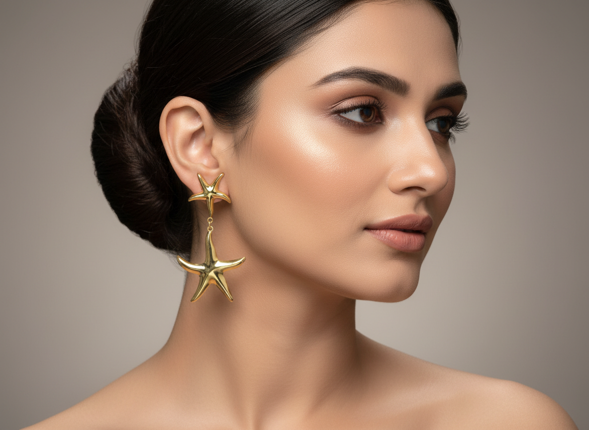 Golden Sea Star Drops combine elegance with everyday wearability. Crafted with anti-tarnish properties, these earrings maintain their lustrous finish through regular wear. The hypoallergenic composition makes them ideal for sensitive skin, while their lightweight design ensures all-day comfort without strain. Perfect for those seeking jewelry that's both beautiful and practical.