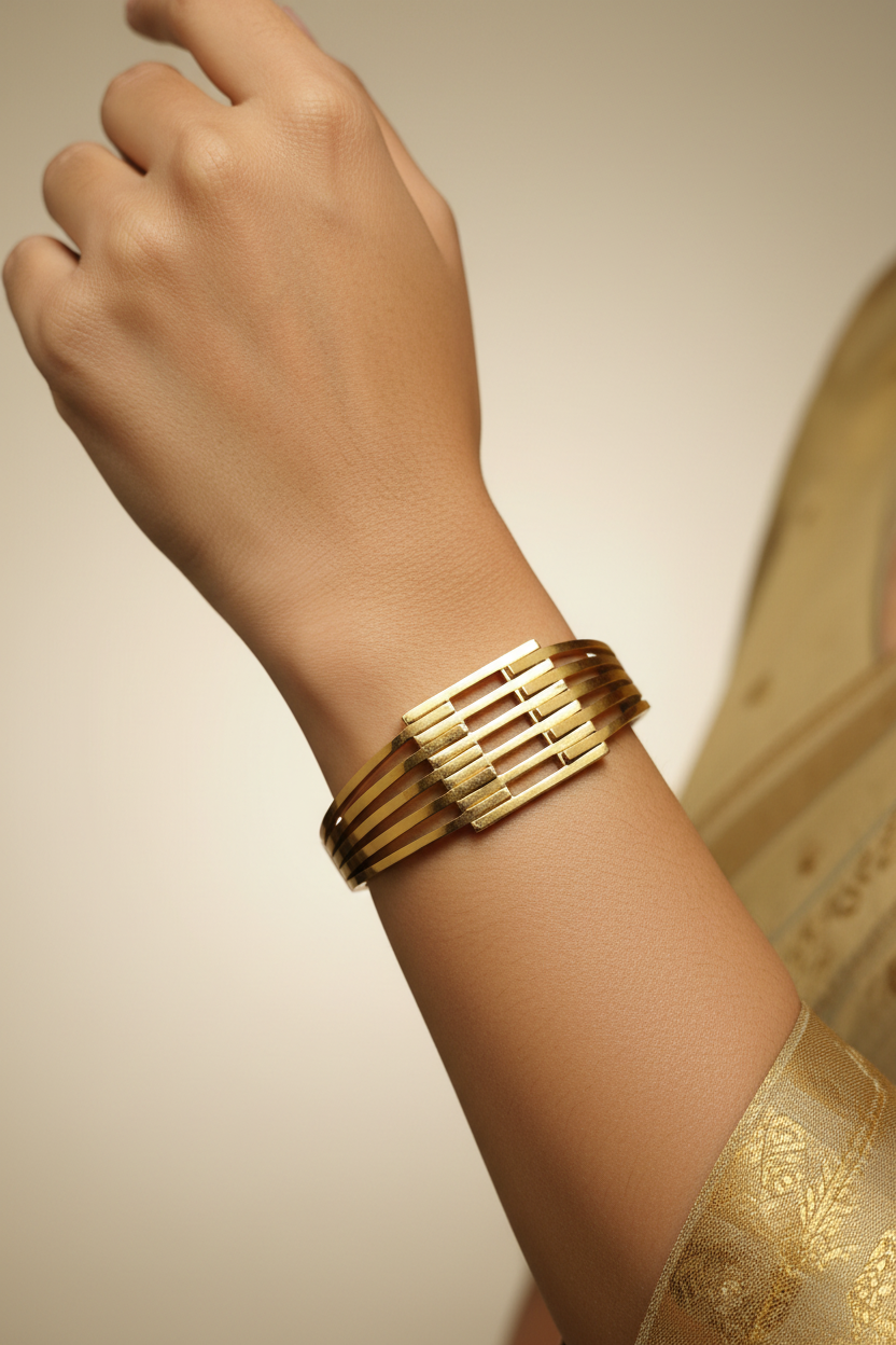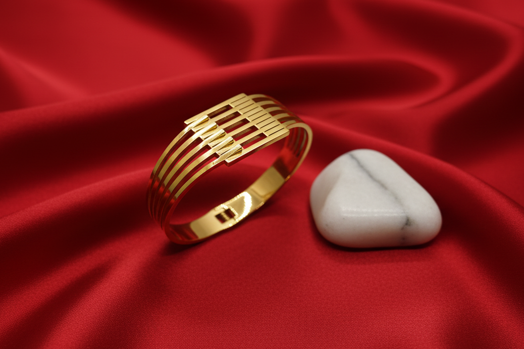 Crafted with precision, this Interlock Linear Kada combines contemporary design with practical elegance. The anti-tarnish finish ensures lasting brilliance, while the lightweight construction offers all-day comfort without compromising on style. Hypoallergenic properties make it ideal for sensitive skin, allowing you to wear it confidently. The free-size fit adapts seamlessly to your wrist, making it a versatile addition to any jewelry collection. Perfect for both everyday wear and special occasions.
